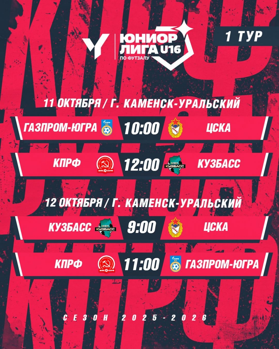 «Арсенал-КПРФ» стартует в Юниорлиге U-16 09.10.2025, 12:24 Наши ребята сыграют в субботу в 12:00 (мск) с «Кузбассом», а в воскресенье, в 11:00 (мск) – с «Газпромом-Югрой». Матчи пройдут в Каменск-Уральском.