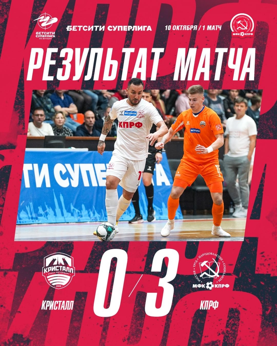 Итог: 3:0 в пользу МФК КПРФ! Завтра команды проведут второй матч в Санкт-Петербурге. Начало – 18:00(мск).