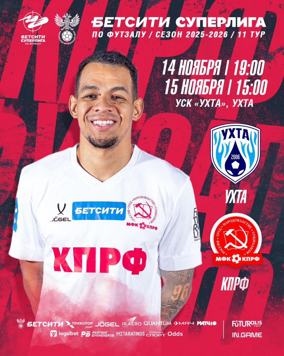 В пятницу и субботу мини-футбольный клуб КПРФ проведет выездные матчи 11-го тура чемпионата Бетсити Суперлиги. Действующие обладатели Кубка России на выезде сыграют с действующим чемпионом страны – «Ухтой».