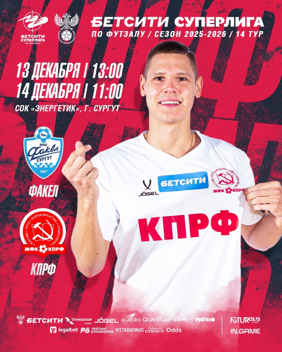В субботу и воскресенье мини-футбольный клуб КПРФ проведет заключительные матчи чемпионата Бетсити Суперлиги в 2025-м. Наша команда сразится на выезде с «Факелом». После этих игр в уходящем году останутся только матчи Бетсити Кубка лиги.