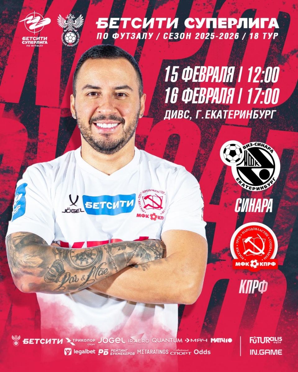 Уже в воскресенье и понедельник мини-футбольному клубу КПРФ предстоит провести поединки 18-го тура чемпионата Бетсити Суперлиги. Наша команда отправится в Екатеринбург, где сыграет с «Синарой».